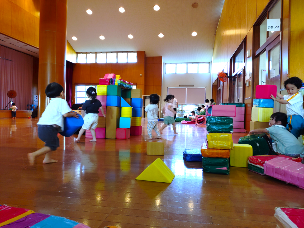 遊戯室は天井が高く、開放感たっぷりで子どもたちが大好きな場所で、いつも子どもたちのにぎやかな声が聞こえています。