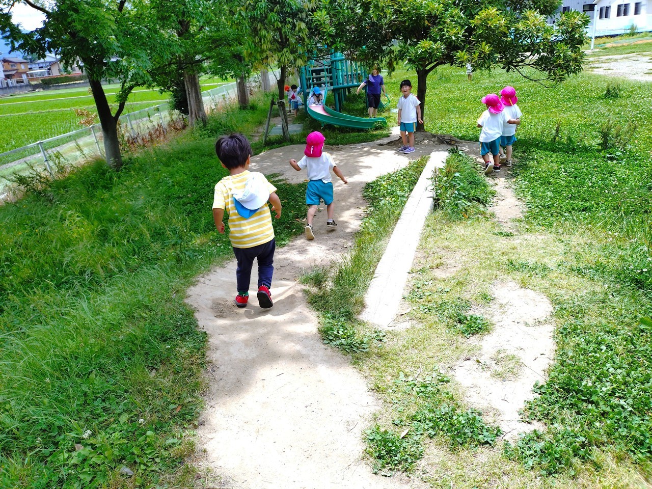 暖かい時期には、草花や虫の観察をしたり、暑い時期にはどろんこ遊びや水遊び、降雪時期には雪遊び…と四季に合わせた遊びを楽しんでいます。