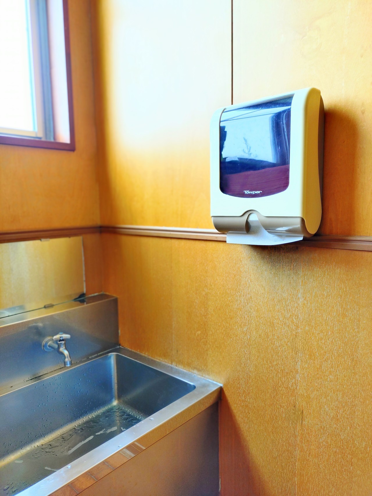 園内全ての水道にはペーパータオルが設置してあります。手洗い時に使用しているので、とても衛生的です。