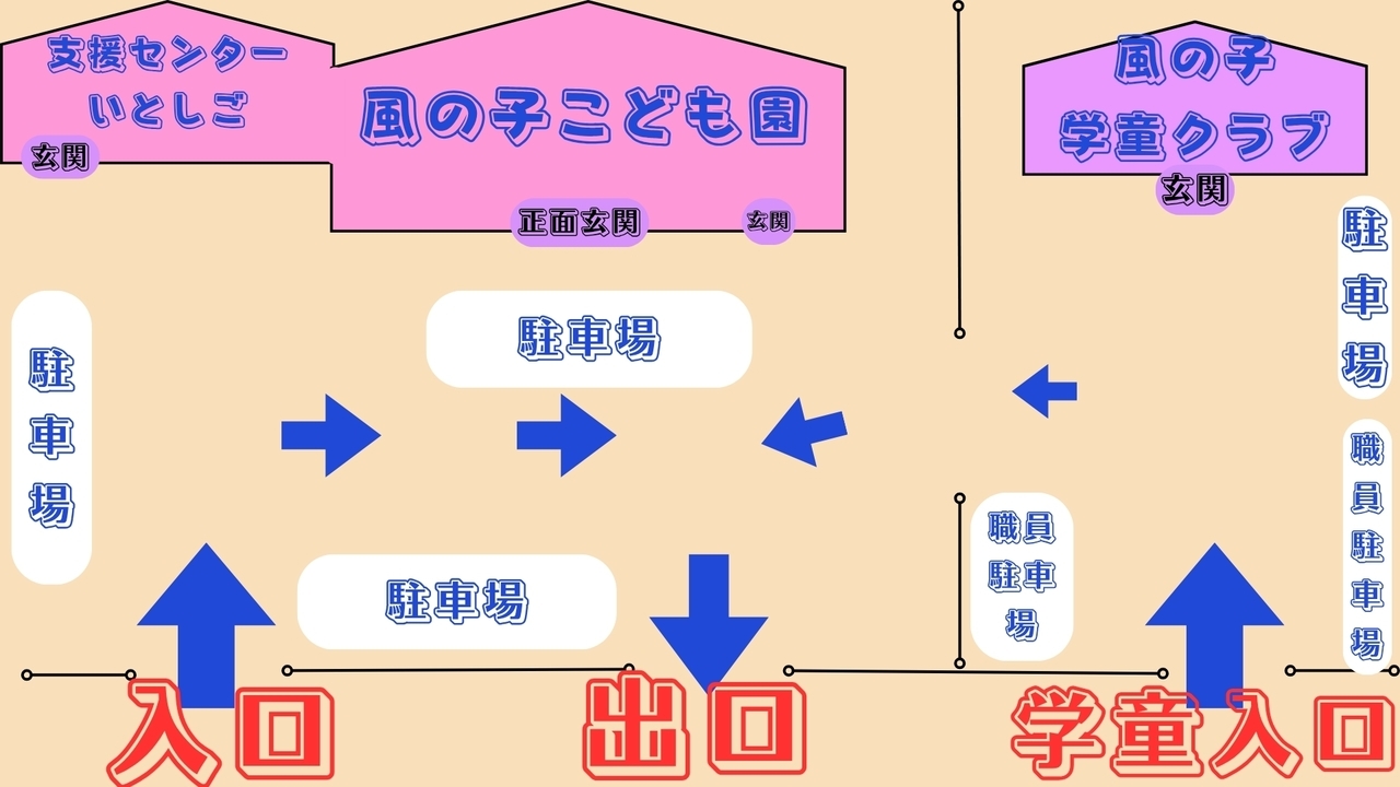 風の子こども園の前の道路は道幅が狭いです。譲り合って運転をしてください。